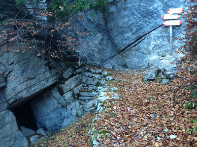 In Vaneze, to the parking lot along the provincial road, just before the Street of Còrno, you must cross the provincial road, heading north along Via dei Falchi, a street in the residential area of Vaneze. Passing the tennis courts, the road bends towards a south-westerly direction. At the bend, keep right and, a few metres on, a narrow path begins, with a sign indicating number 11, and the writing Mezavia-Vason-Brigolina- Viote. You follow this path on a slight incline until you reach a fork not far above the Selva forest road, which you can see below. The path takes the uphill direction, along the so-called Senter del Taiadic, following the signs marked with number 11. Around numerous bends, you climb - passing typical rock faces - until you reach a forest road, which you cross, continuing uphill. At an altitude of 1500 m, you come to another forest road and, heading left, this leads you to a bend in the provincial road in the village of Norge. You follow the road uphill for a few metres and, having passed a house, you head up a stairway made of wooden logs which follows the boundaries of private properties. You soon come to a sign indicating the road to follow to reach Vason. As soon as you enter the forest, there is a cave and a typical rock formation. Continuing, you travel the small valley to its end, where the path becomes flat. At the fork, it is possible to take a short detour to visit the remains of Caposaldo V/4 - ruins of trenches and defensive posts dating back to the Great War. Once you have returned to the fork, you continue in a south-westerly direction, reaching a forest road which you follow for about 600 m, until you come to signs indicating Vason-Palestra di roccia. A typical stairway is the path you must follow, with numerous bends it runs parallel to a rock face. At the first fork, characterised by a cave and an indentation in the rock face - travelled by a stone stairway - you keep right (if you go left, you follow the stairway carved into the rock face and you end up in the lower part of Vason). Continuing, you soon reach the Palestra di Roccia and Parco Avventura [Rock climbing training area and Adventure Park], dedicated to Giorgio and Rita Graffer. A short distance later, at the fork, you take the path on the left and encounter the first houses in Vason. When you reach the large parking lot, you climb the provincial road to the bottom station of the Palon cableway. From here, along the skiing slopes, you descend towards Norge and, continuing along the slopes, to Vaneze. It is possible to close the circular route in Norge, or to start it in Vason.